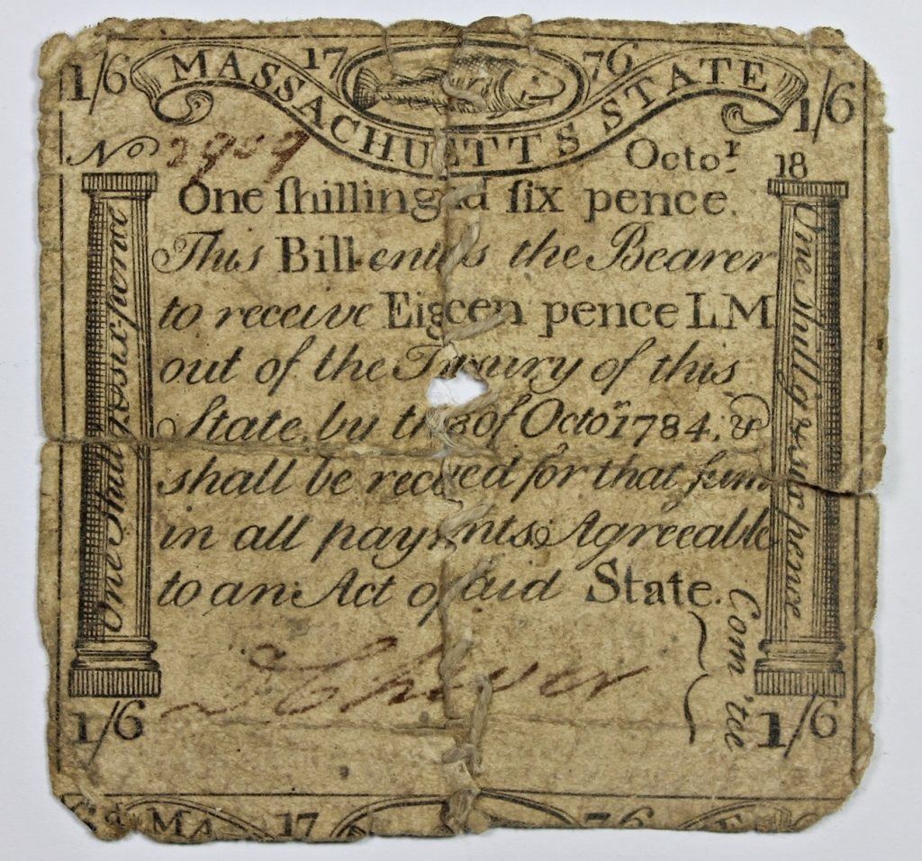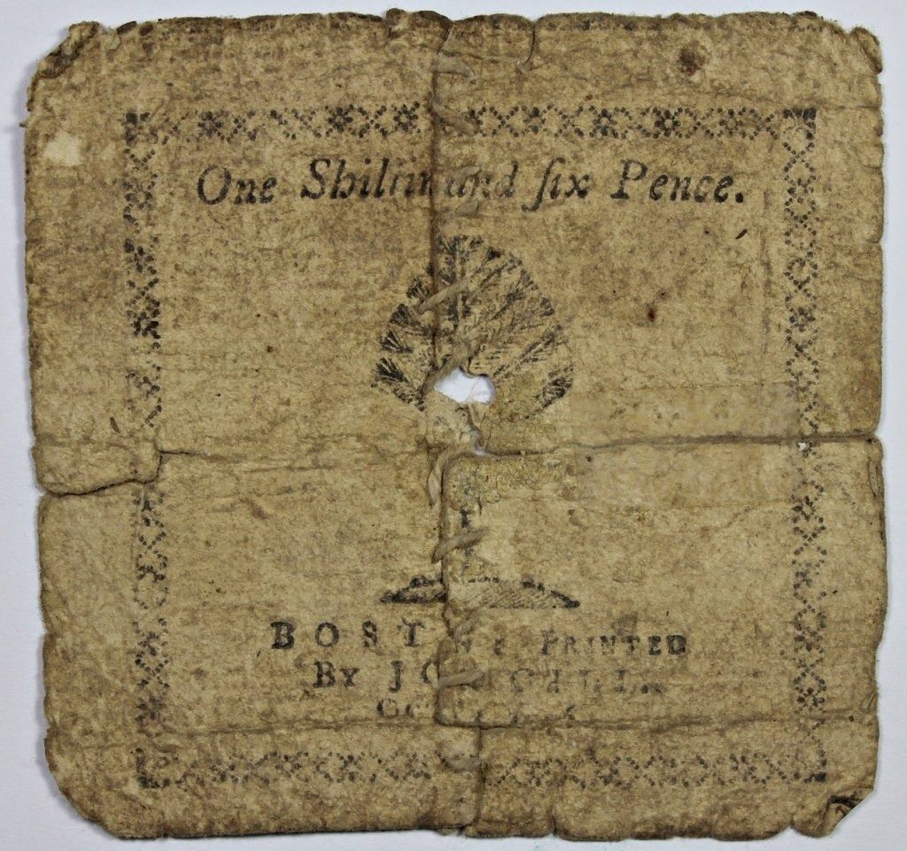 6 PENCE CODFISH HAND SEWN. F/VG. DETAILS. RARE! ESTIMATE: $400-$500