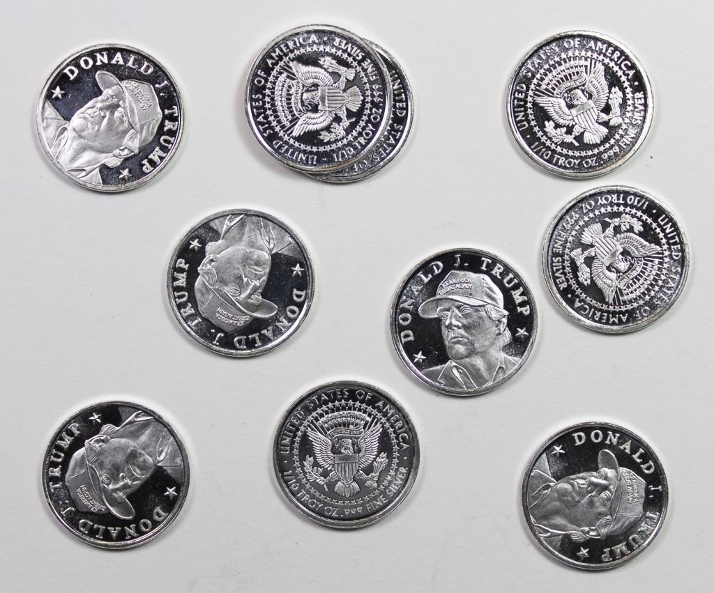 10 .999 SILVER 1/10 OZ DONALD TRUMP ROUNDS. ESTIMATE: $60-$100