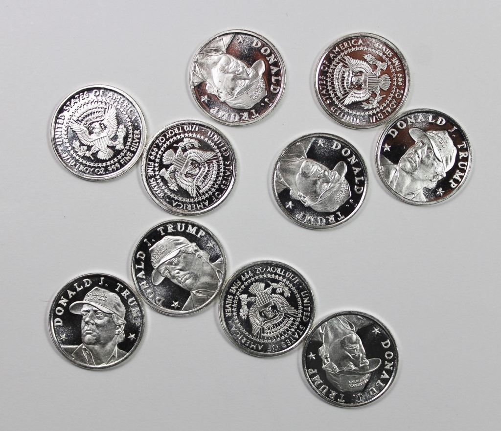10 .999 SILVER 1/10 OZ DONALD TRUMP ROUNDS. ESTIMATE: $60-$100