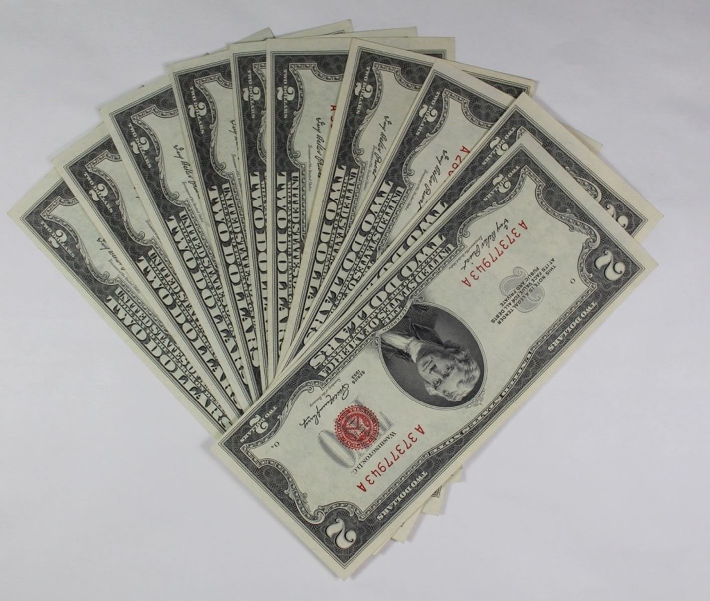 10 PIECE 1953 $2.00 U.S NOTES