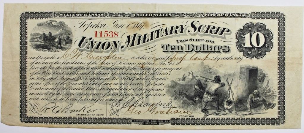 UNION MILITARY SCRIP. RARE VF. ESTIMATE: $200-$300