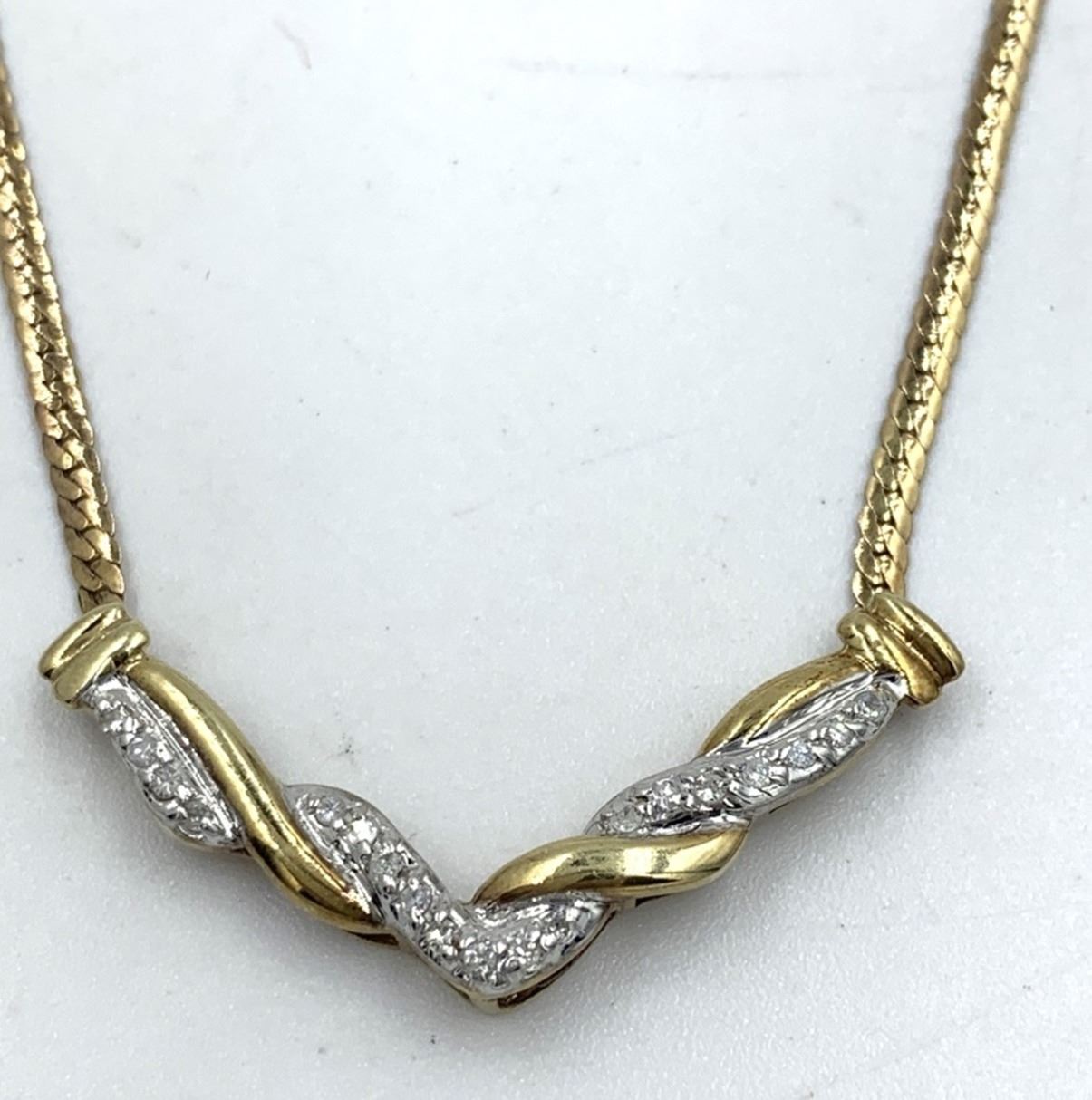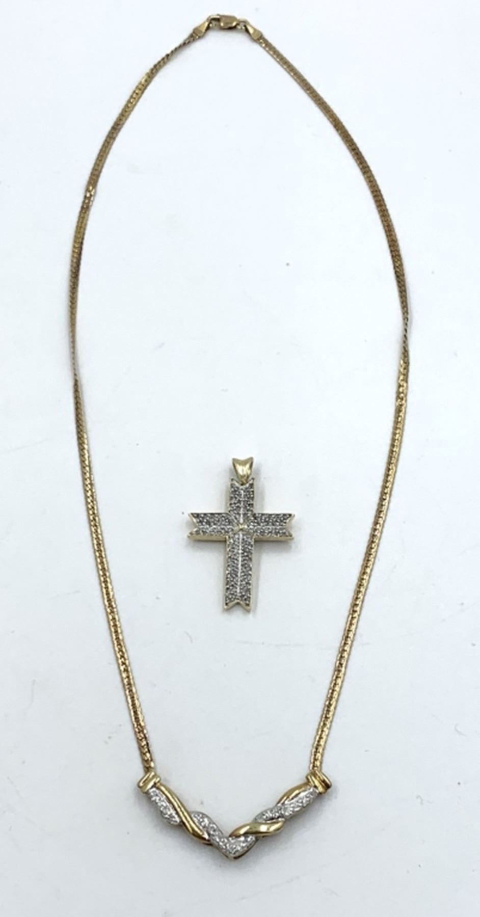 14K GOLD NECKLACE WITH DIAMOND ACCENTS AND A 10K GOLD CROSS PENDANT WITH DIAMONDS. ESTIMATE: $300-$400