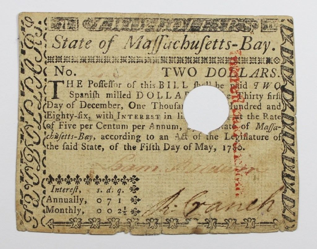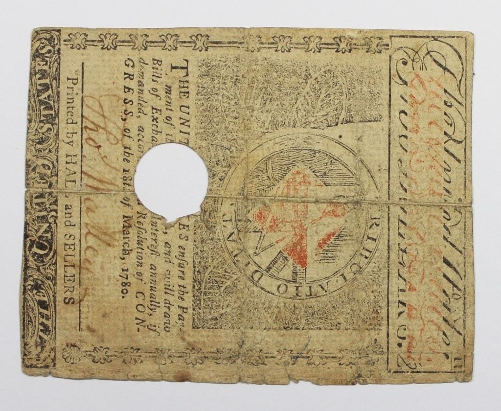 MAY 5, 1780. HOLE PUNCH. FINE. ESTIMATE: $150-$200