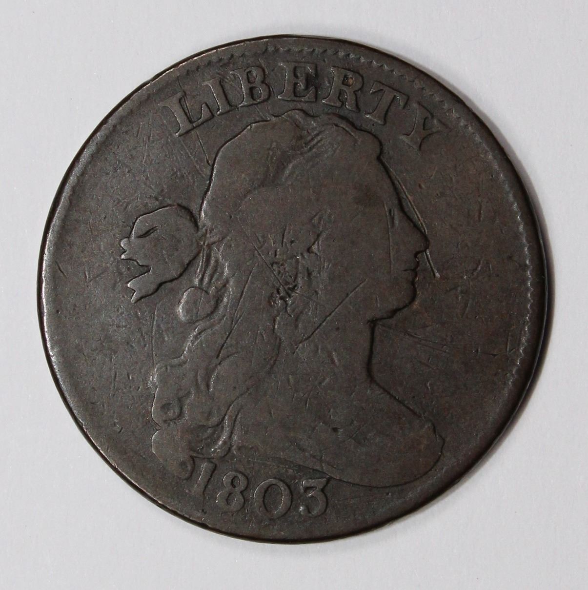 1803 LARGE CENT, VG/FINE, NICE CHOCOLATE BROWN COLOR. ESTIMATE: $275. - $300.00