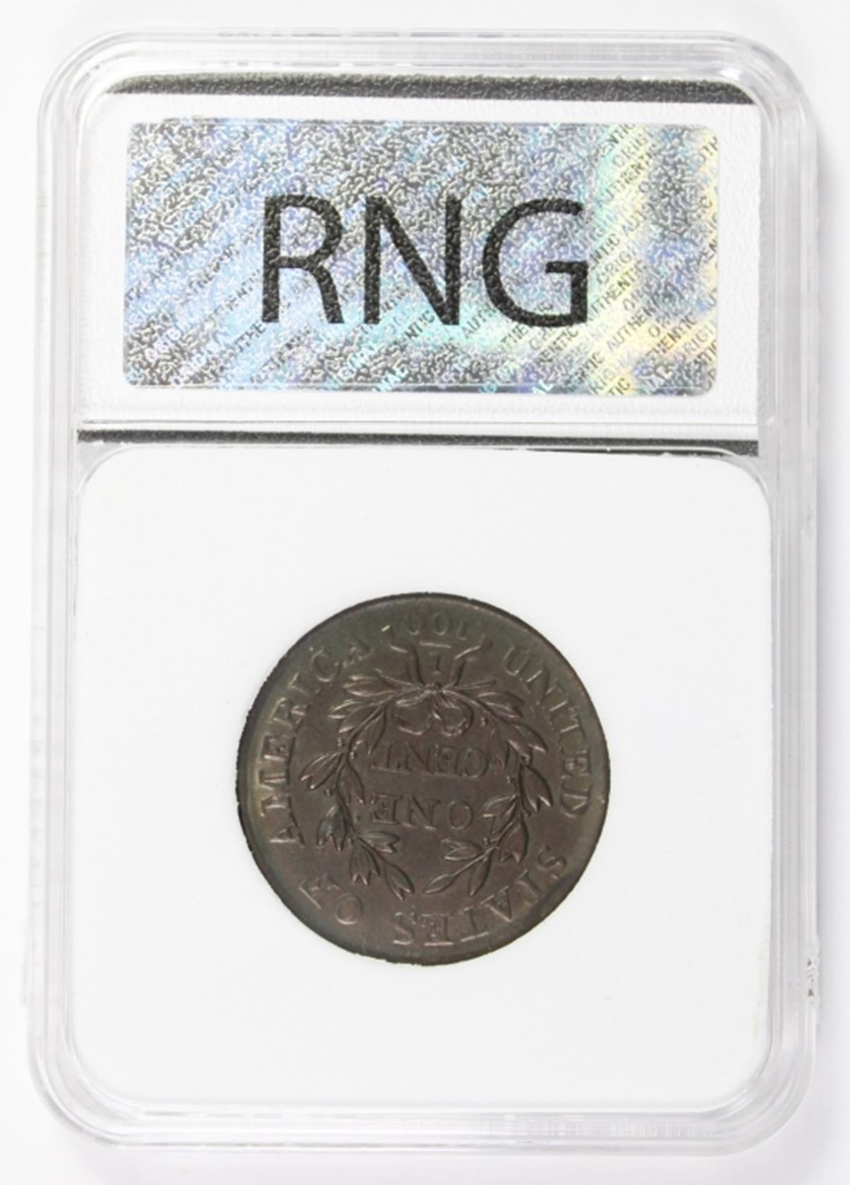 RNG GRADED. GEM UNC, BROWN, BEAUTIFUL COIN THAT HAS A LITTLE RED YET! NO MARKS, BEAUTIFUL COIN, SMALL DATE, LARGE FRACTION, BEST WE HAVE HAD! VERY RARE! ESTIMATE: $25,000-$30,000