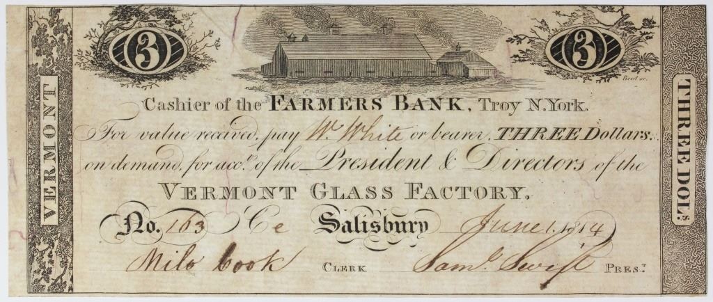 TROY NEW YORK VERMONT GLASS FACTORY. ESTIMATE: $150-$200