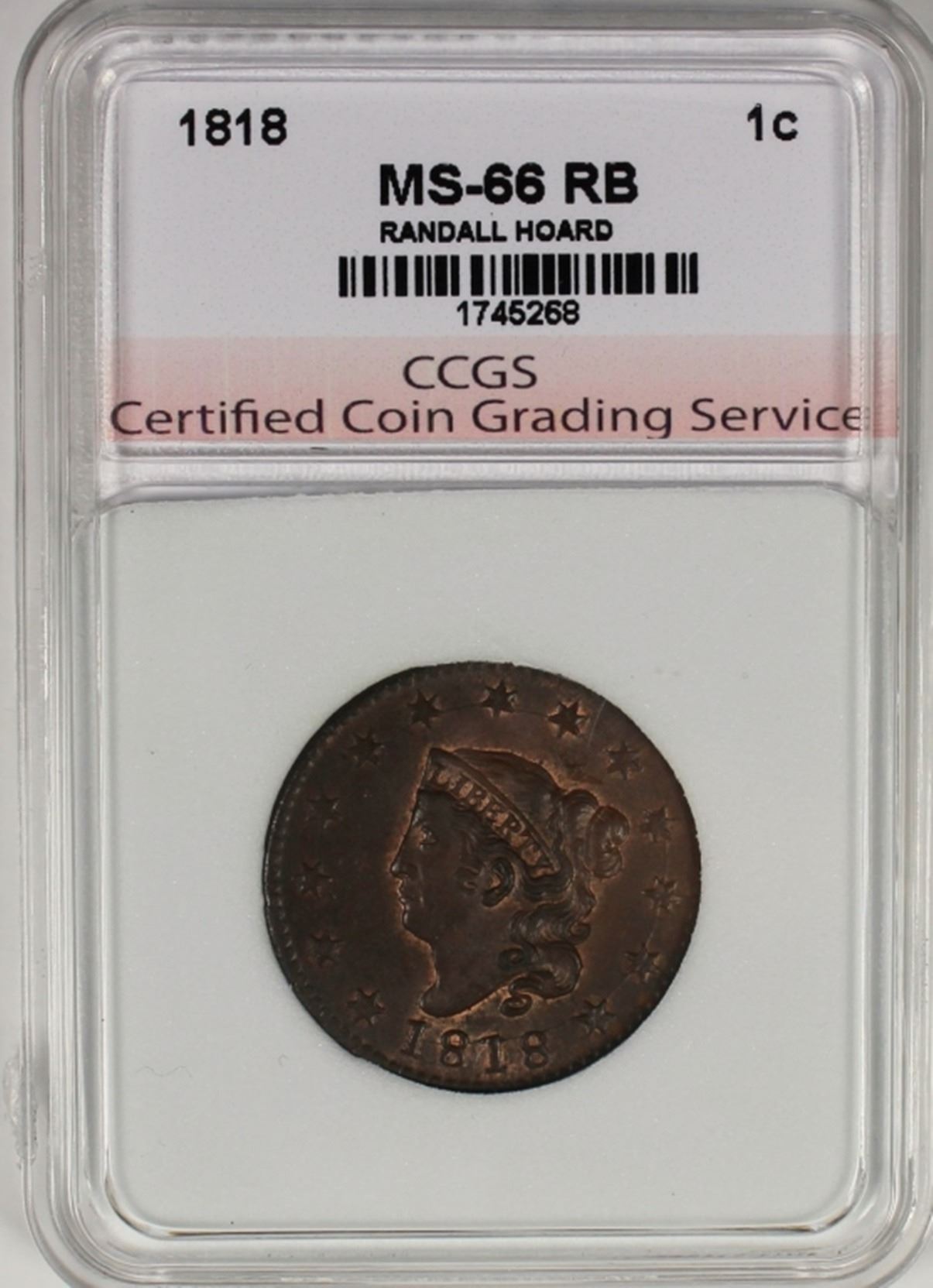 CCGS SUPERB BU RB! A VERY CHOICE COIN WITH PERFECT LOOKING SURFACE, ALL THE DIE BREAKS ETC KNOWN TO COME OUT OF THE RANDALL HOARD! ESTIMATE: $3250-$3750