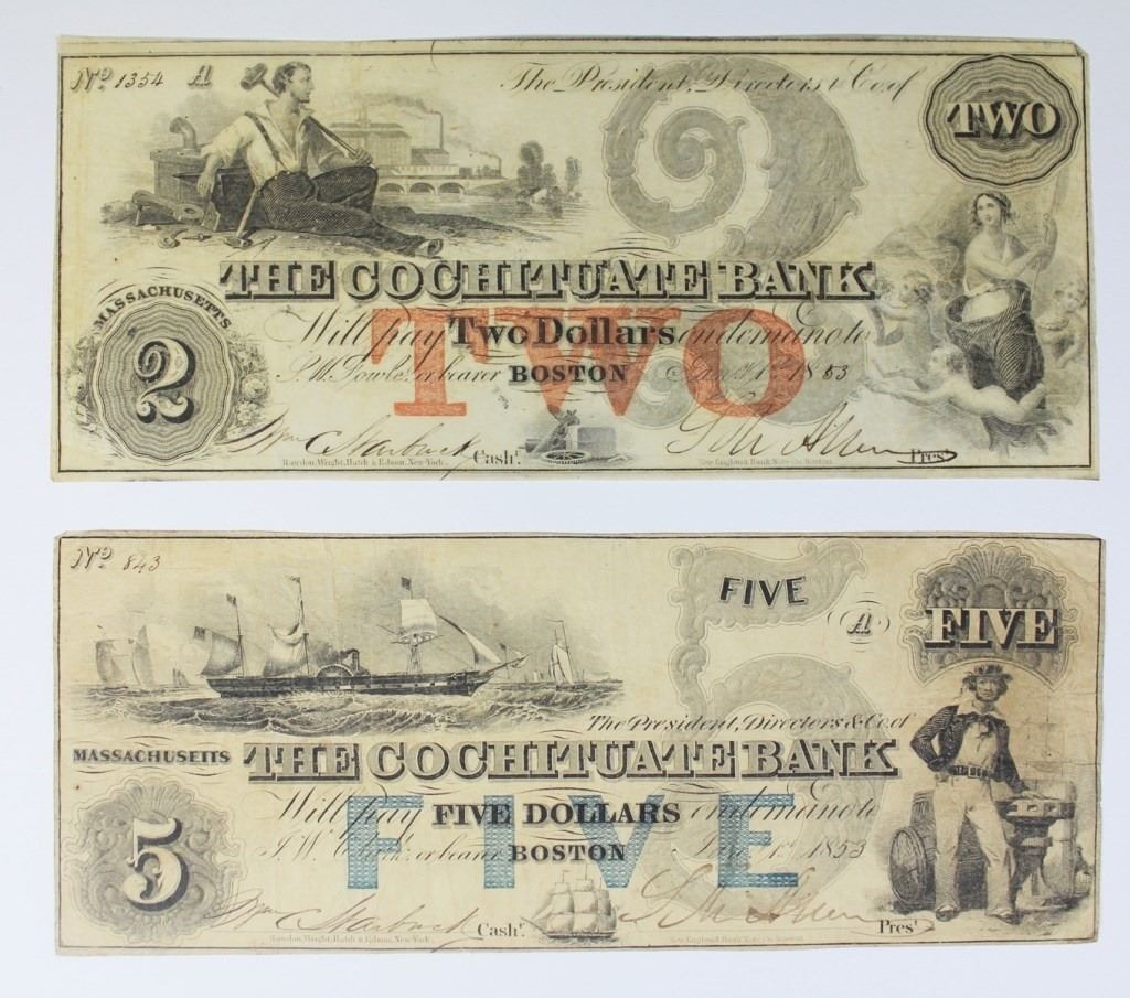 $5 MASSACHUSETTS AND A $2 BOSTON NOTE. ESTIMATE: $80-$100