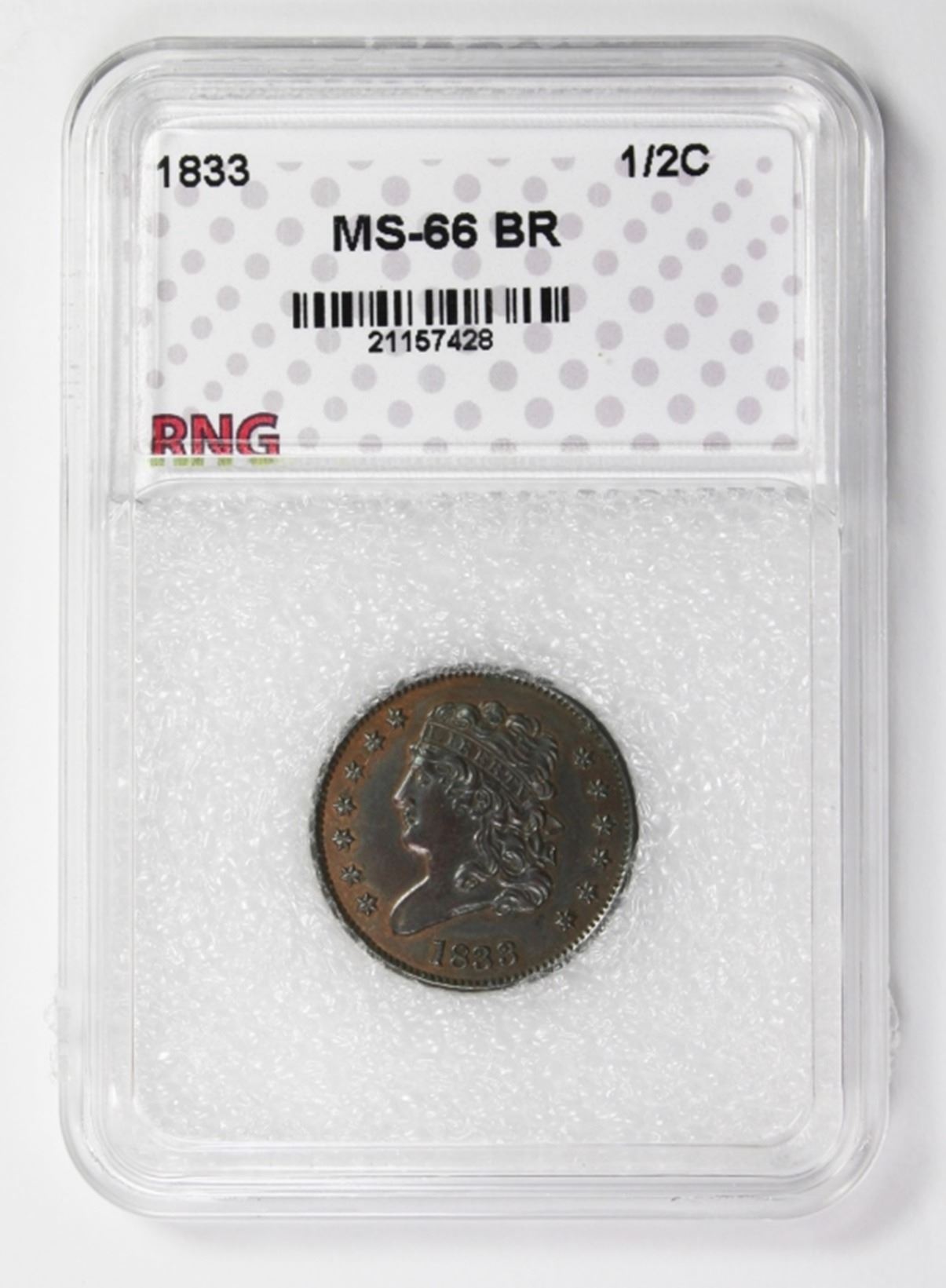 RNG GRADED. SUPERB BU+ BROWN WITH A LITTLE RED, VERY CHOICE COIN! ESTIMATE: $2,000-$2,500