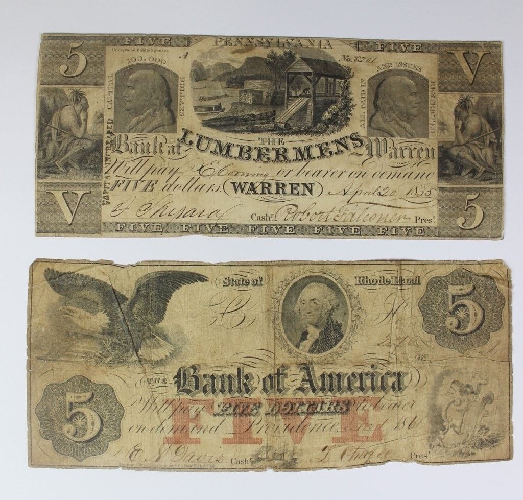 1835 PENNSYLVANIA AND $5 RHODE ISLAND. ESTIMATE: $80-$100