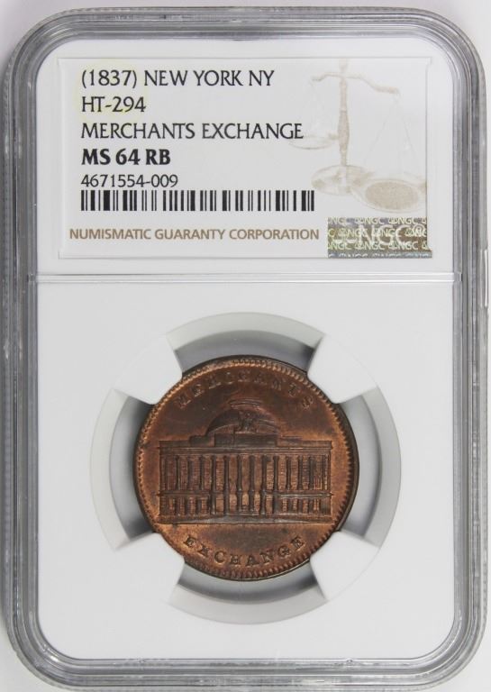 HT294 NGC MS64 RB. NEW YORK MERCHANT EXCHANGE. ESTIMATE: $1000-$1200