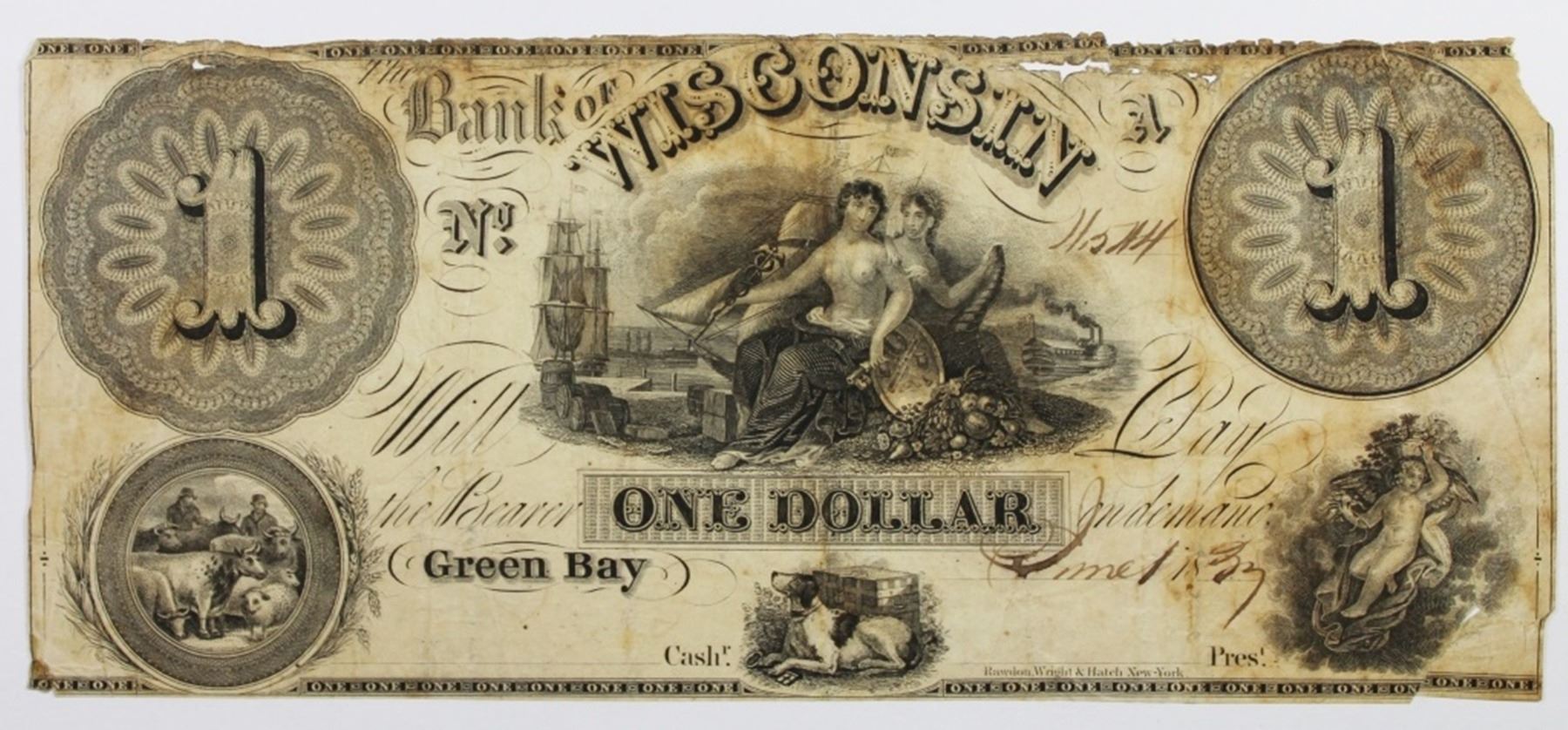 GREEN BAY, WISCONSIN. VG SIGNED NOTE. RIPS. ESTIMATE: $250-$300