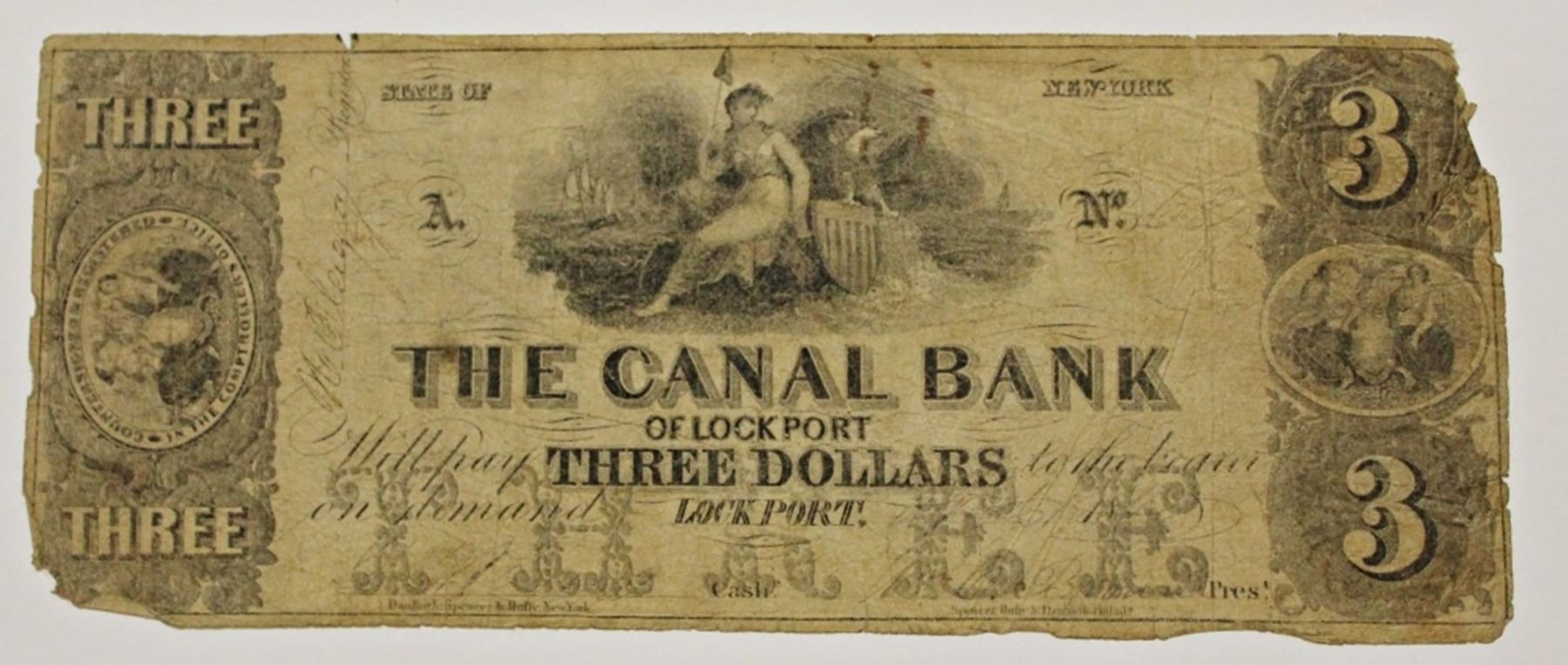 1840 $3.00 THE CANAL BANK OF LOCKPORT, NY
