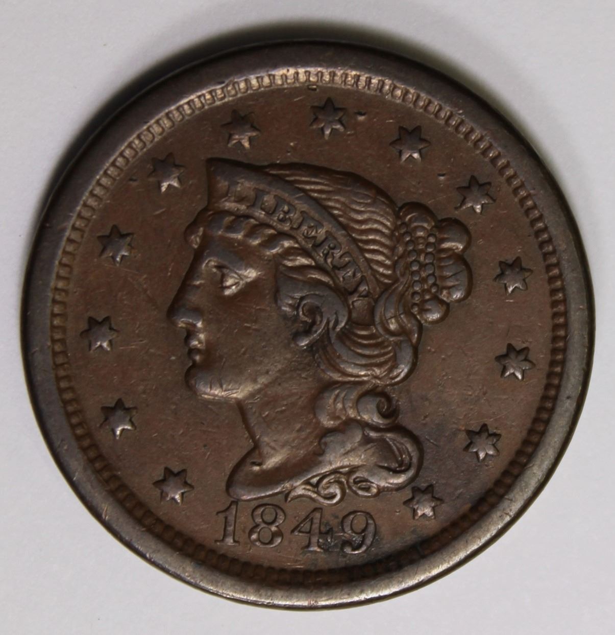 1849 LARGE CENT BEAUTIFUL COLOR XF/AU. ESTIMATE: $115-$150