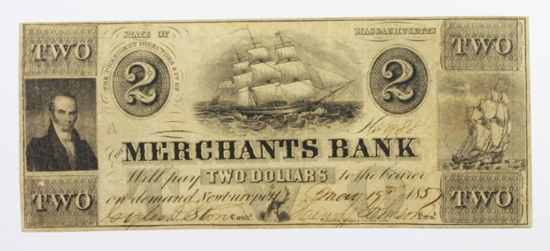 1857 $2 MERCHANTS BANK NEWBURYPORT, MASS.