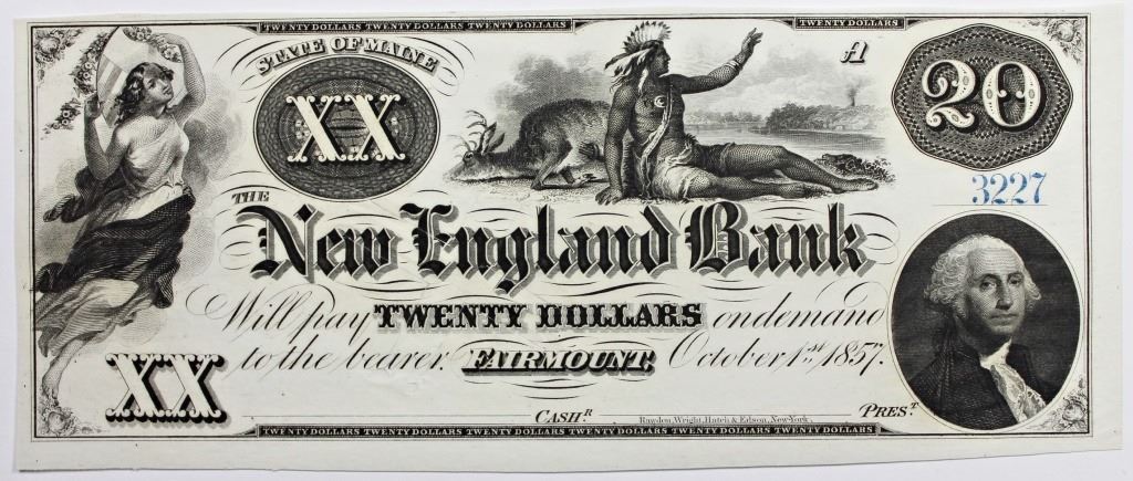 1857 $20 NORTHEAST BANK FAIRMOUNT, MAINE