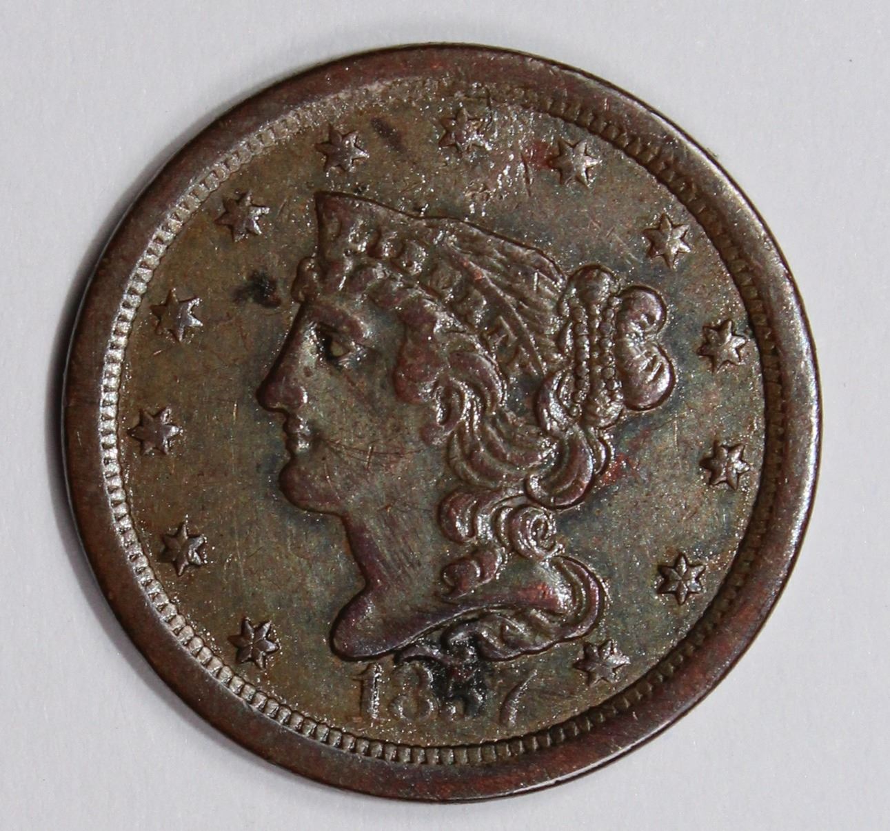 1857 HALF CENT, GLOSSY BROWN, AU, RARE DATE! ESTIMATE: $275. - $300.00