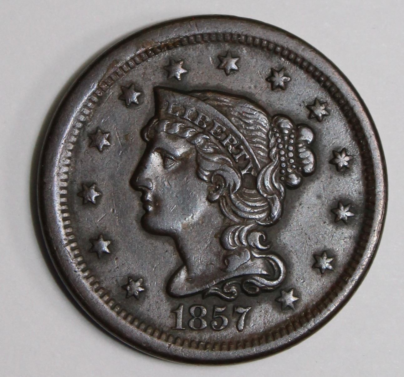 1857 LARGE CENT SMALL DATE CF KEY COIN! NICE! ESTIMATE: $325-$400