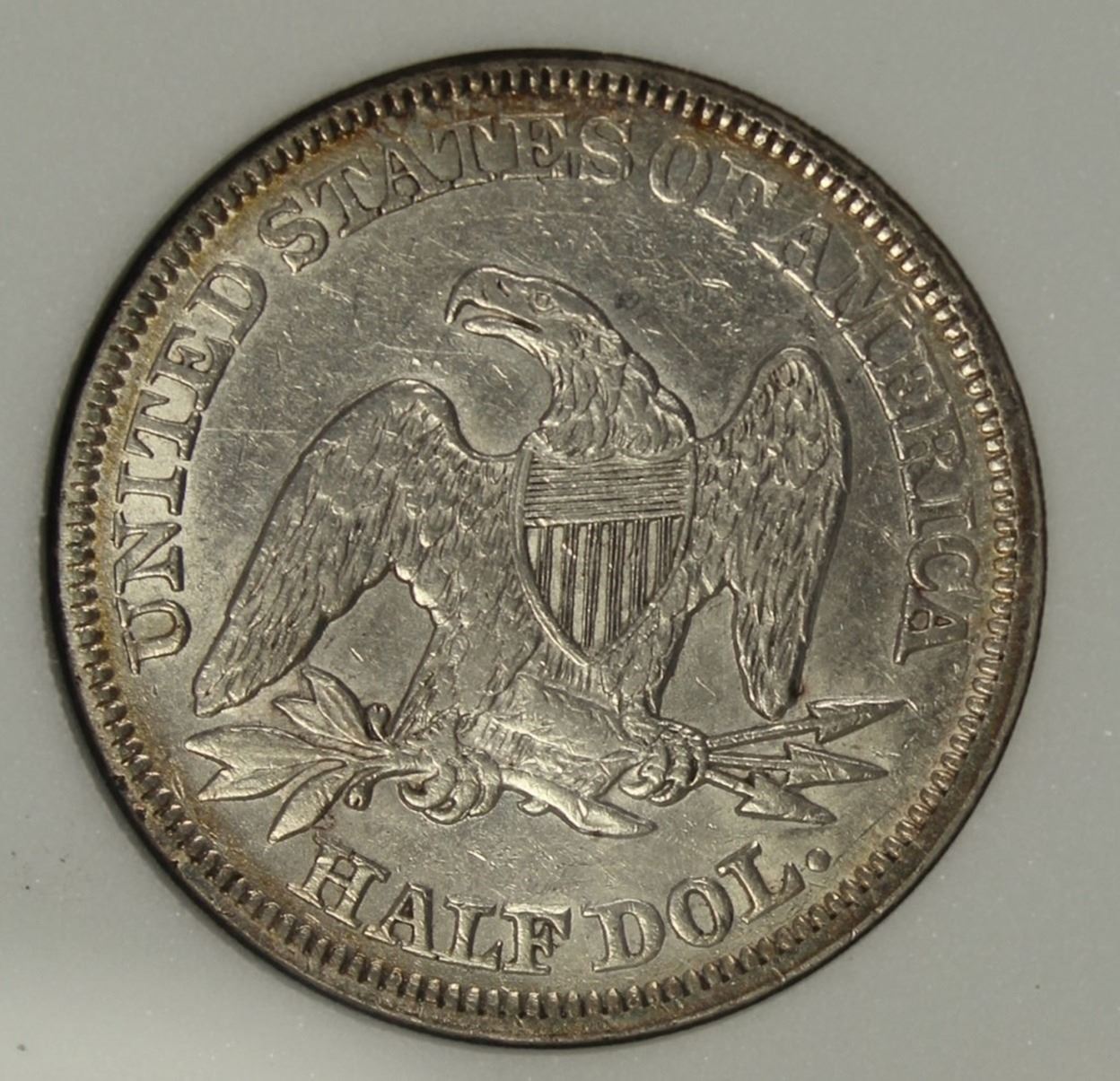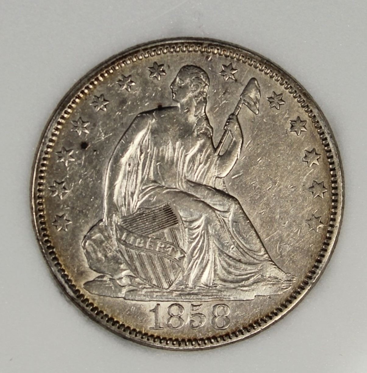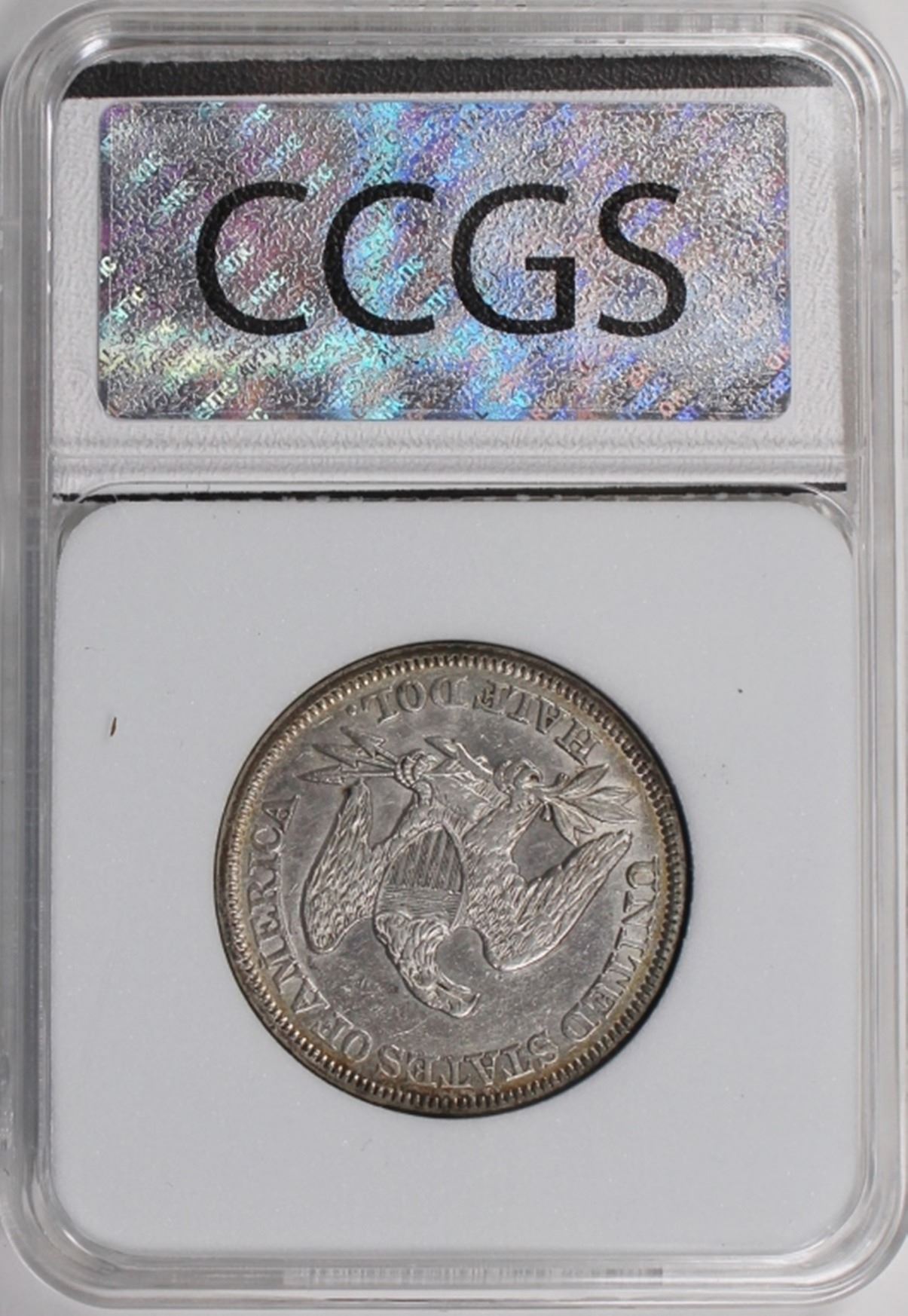 1858 SEATED HALF DOLLAR CCGS AU/UNC