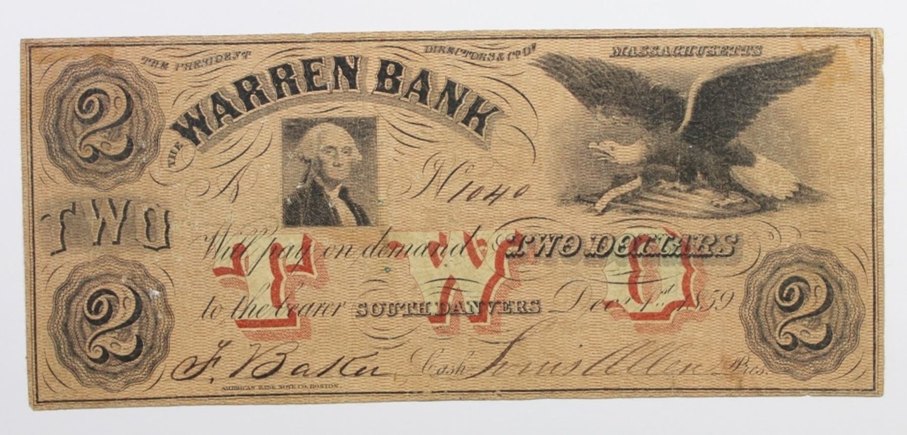 SOUTH DANVERS, MASS. PINHOLES. RED TINT. VF. ESTIMATE: $400-$500