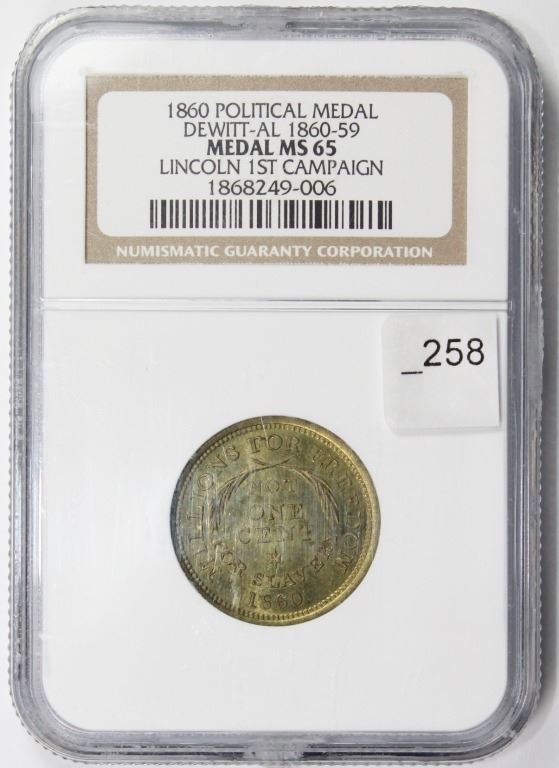 DEWITT-AL 1860-1859. LINCOLN 1ST COMPAIGN. ESTIMATE: $1000-$1100