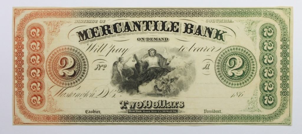 1860'S $2 MERCHANT'S BANK WASHINGTON, DC