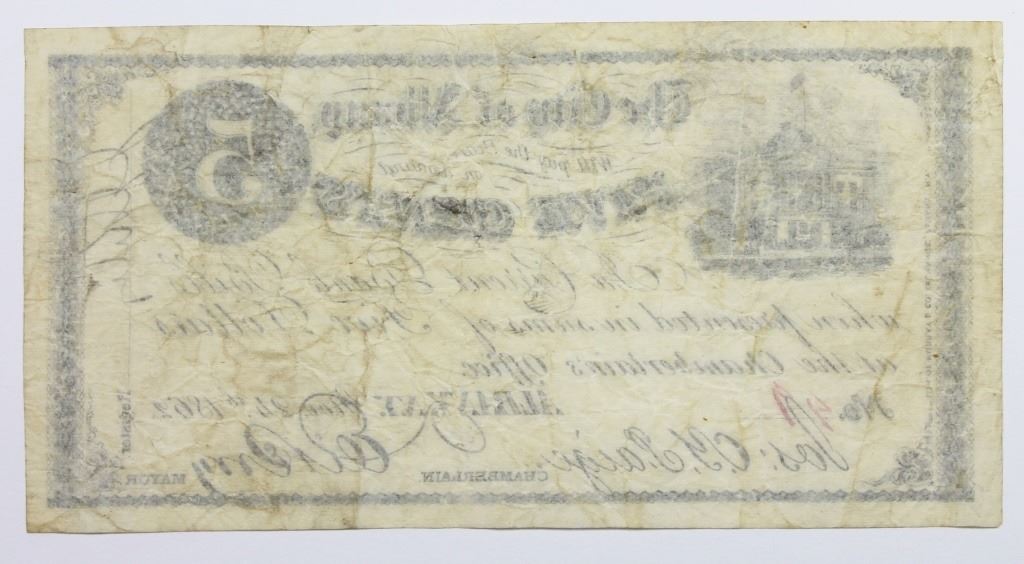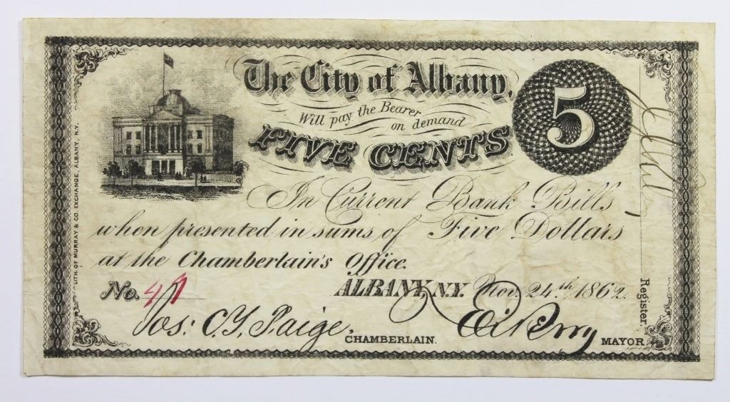 1862 FIVE CENTS CITY OF ALBANY, NY.