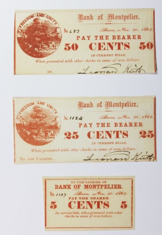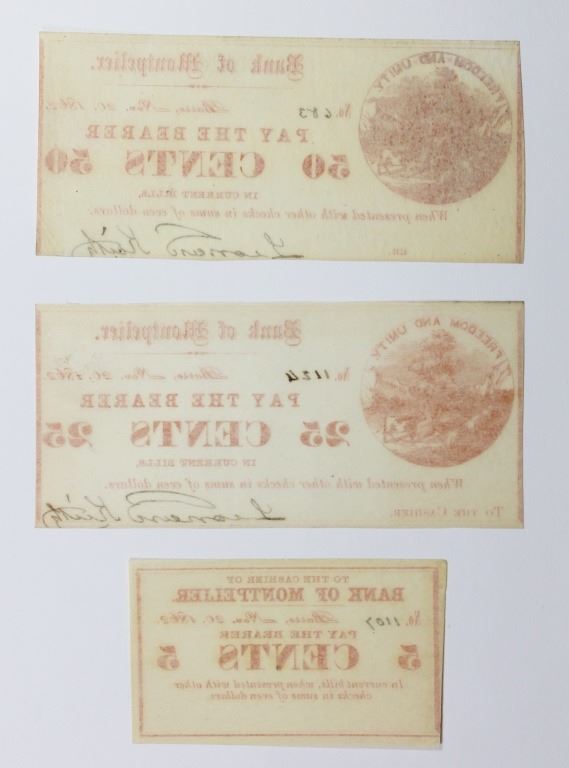 1862 THREE PIECE LOT BANK OF MONTPELIER, VERMONT