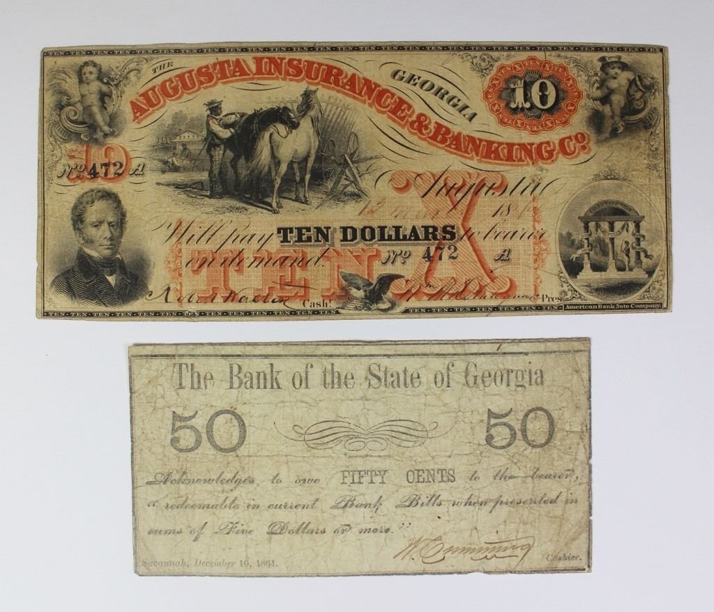 1864 FIFTY CENT GEORGIA AND 1884 $10 GEORGIA. ESTIMATE: $75-$100