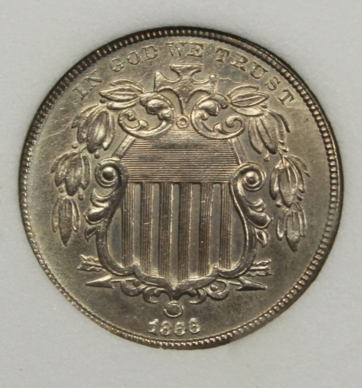 NICE BRIGHT LUSTER! MINT ERROR ALSO PLANCHET FLAKE ERROR REVERSE IN "AMERICA". ESTIMATE: $2850-$3000