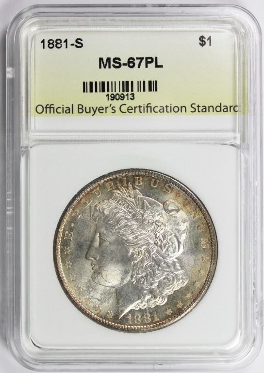OBCS GRADED. SUPERB PL BU+ WHITE OBV. WITH A LITTLE RIM COLOR, REV. WILD GOLDEN COLORS! ESTIMATE: $875-$950