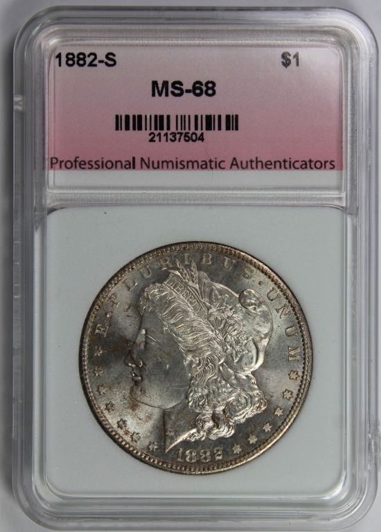 PNA GRADED. SUPERB BU++ A SPECTACUALR DOLLAR DOLLAR! MOSTLY WHITE, 100% ORIGINAL. ESTIMATE: $3000-$3500