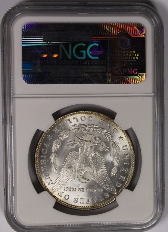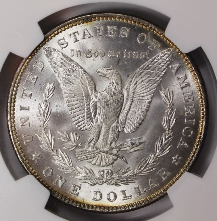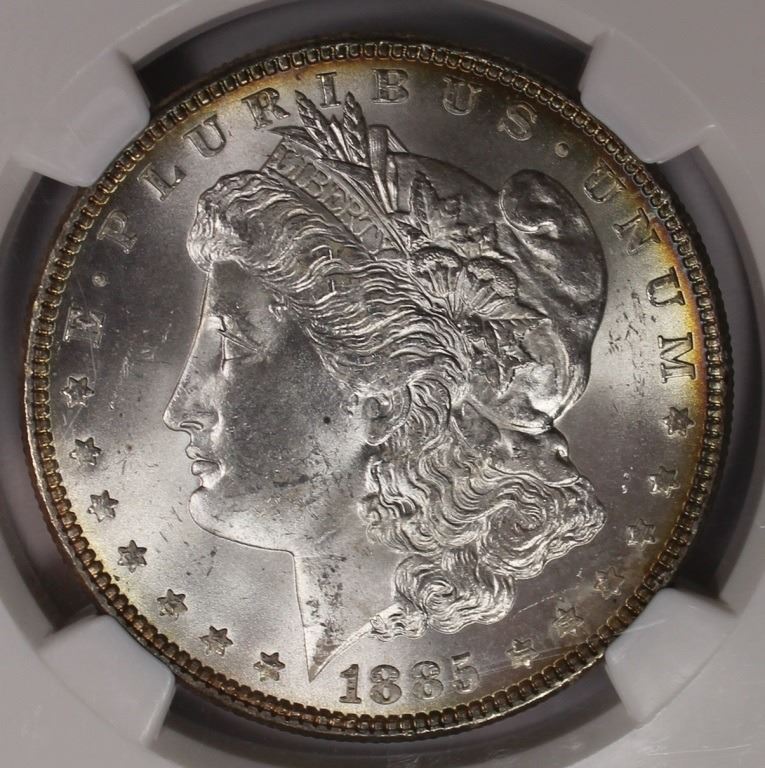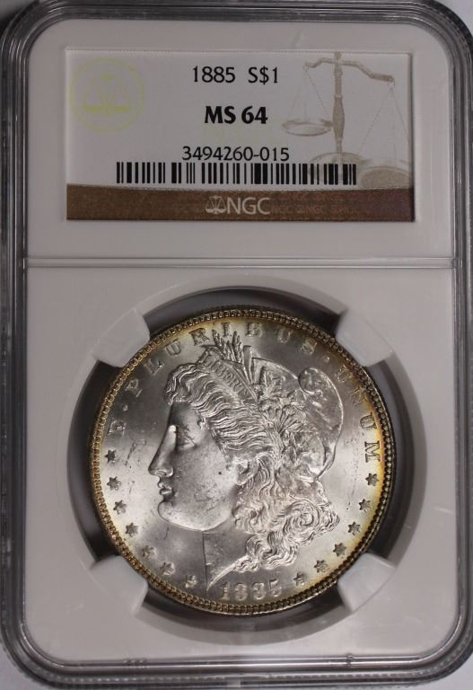 1885 MORGAN SILVER DOLLAR NGC MS 64. WHITE! ESTIMATE: $90-$120