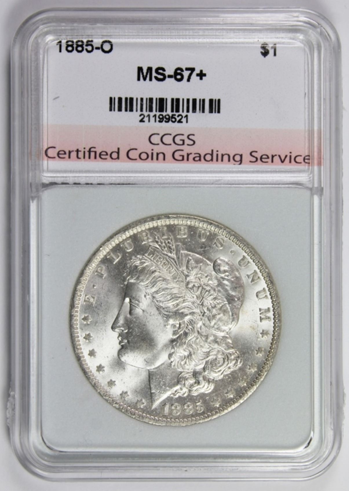 MS67+ BLAST WHITE, CCGS GREAT SURFACES, SMOOTH MARK FREE CHEEK. ESTIMATE: $600-$650