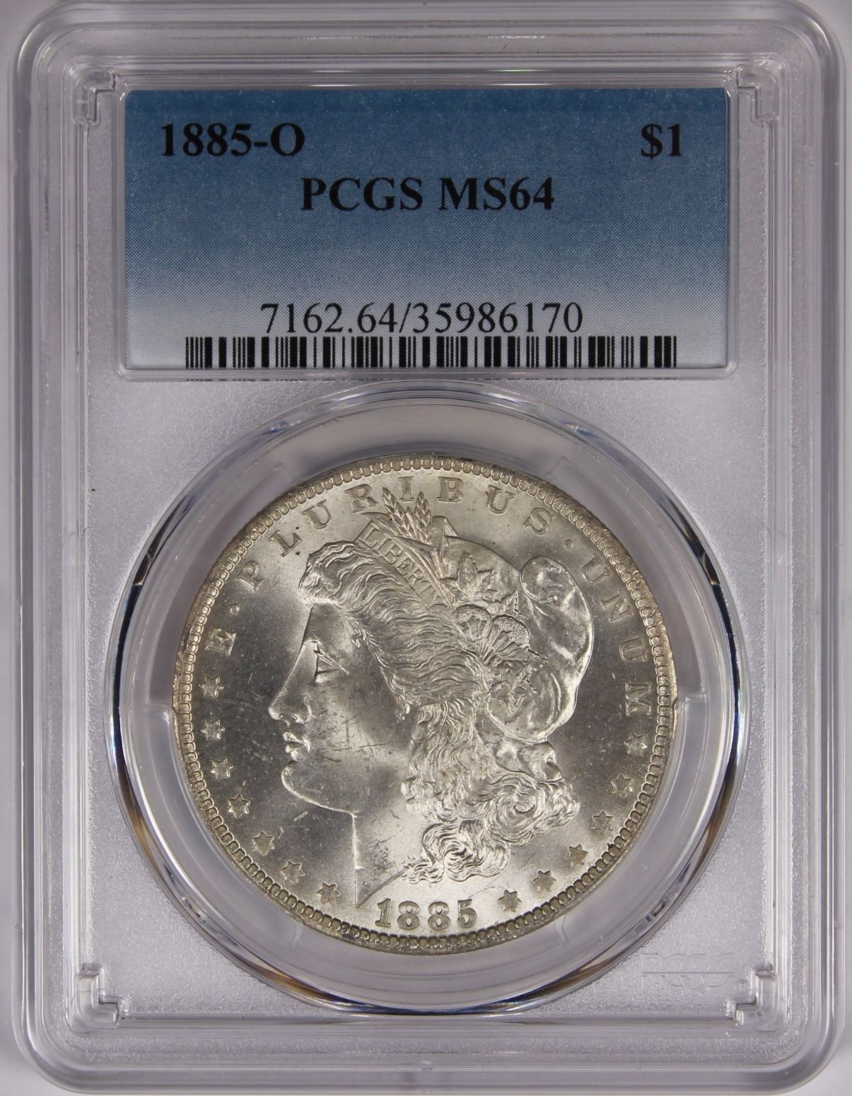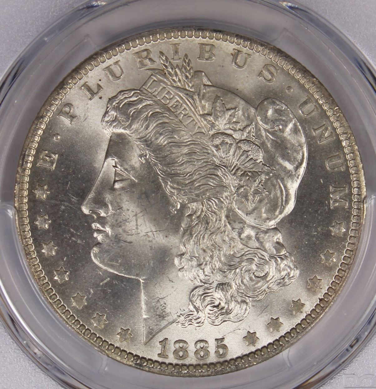 1885-0 MORGAN SILVER DOLLAR PCGS MS 64 SNOW WHITE. ESTIMATE: $90-120