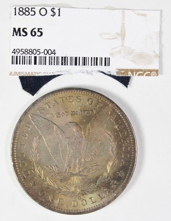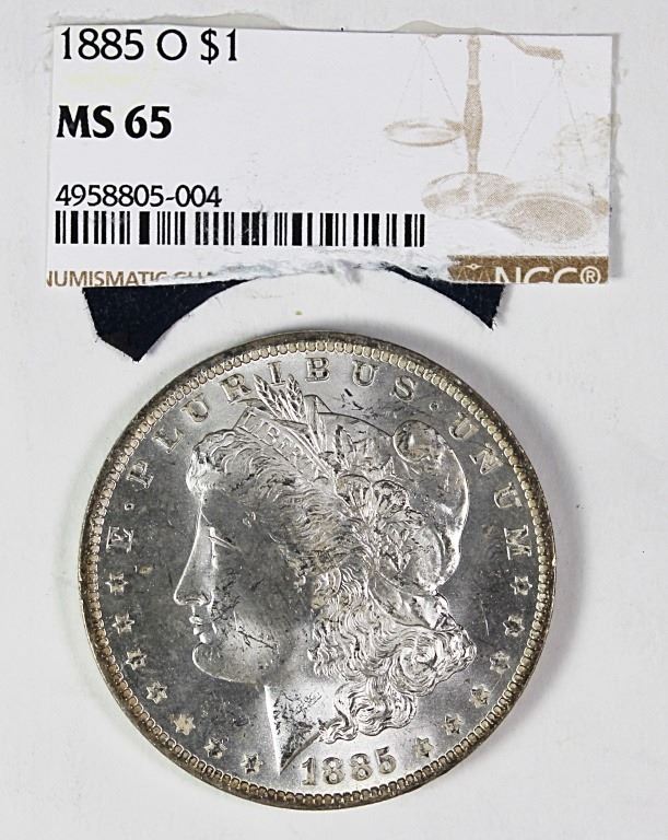 GRADING: Every person has their own opinion. There are many commercial grading companies and each company has its own terminology, procedures and opinion as to the grade of each numismatic item. R Howard Collectibles cannot guarantee grade of any item because grade is a matter of opinion. R Howard Collectibles does not guarantee that one grading company will grade in the same manner as another competing company. It is the responsibility of the buyer to examine and grade to their own satisfaction before they bid. ABSOLUTELY NO RETURNS ON THE BASIS OF GRADE. Buyers shall rely entirely on their own inspection and information. Our estimates are values taken from the latest trends published in leading numismatic journals. This value/estimate is not an inducement to bid this amount. Bid the amount you wish. If you have questions or concerns about any items, call us before you bid.