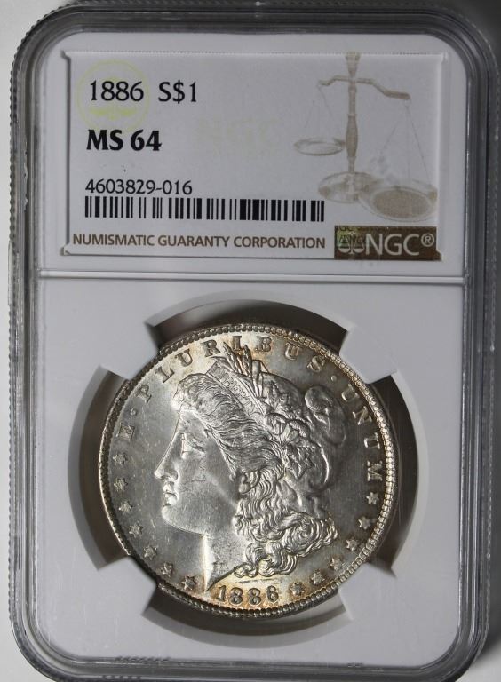 1886 MORGAN SILVER DOLLAR NGC MS64. ESTIMATE: $85-$100