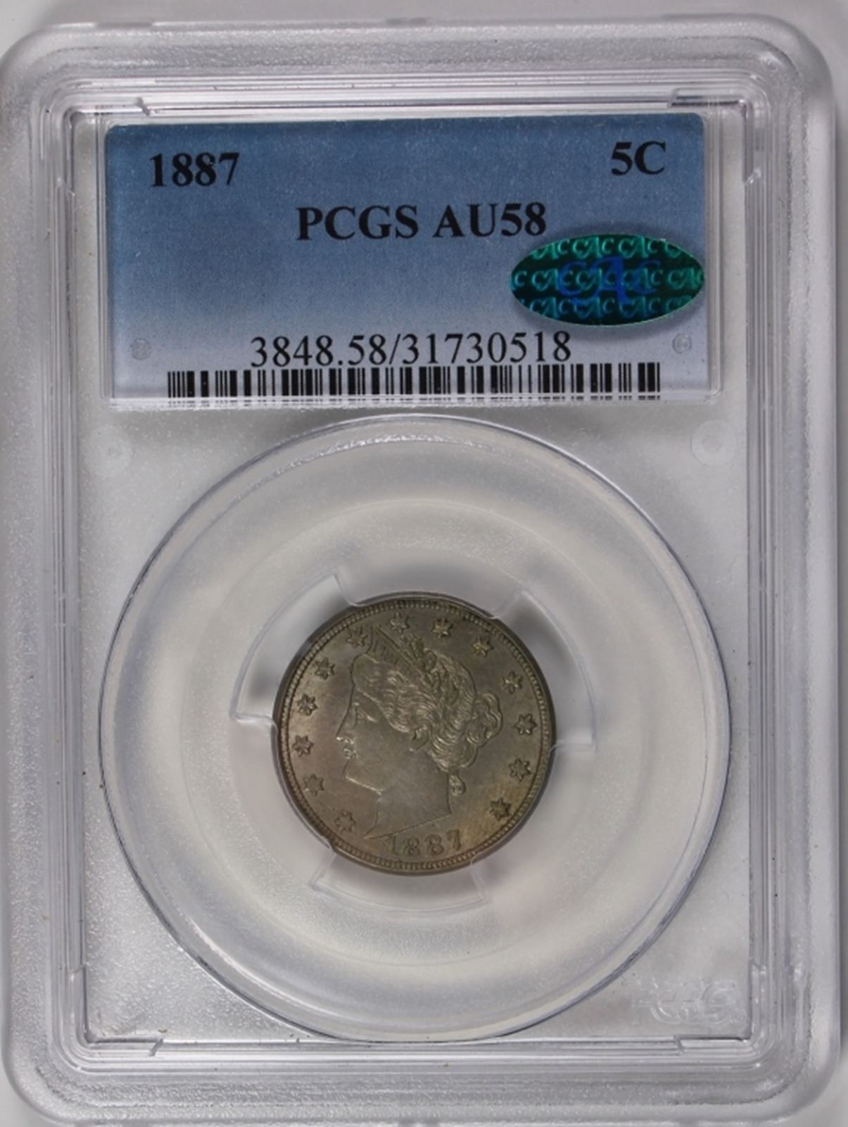 1887 LIBERTY NICKEL PCGS AU 58 CAC