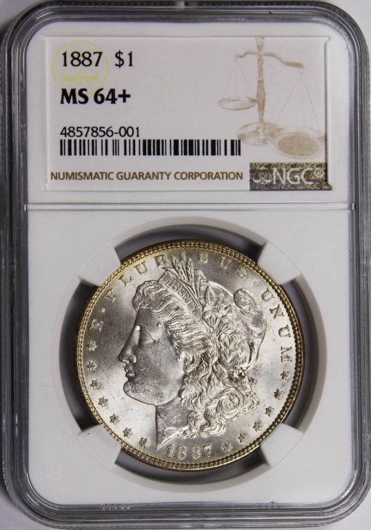 1887 MORGAN SILVER DOLLAR NGC MS64+. WHITE. ESTIMATE: $90-$120