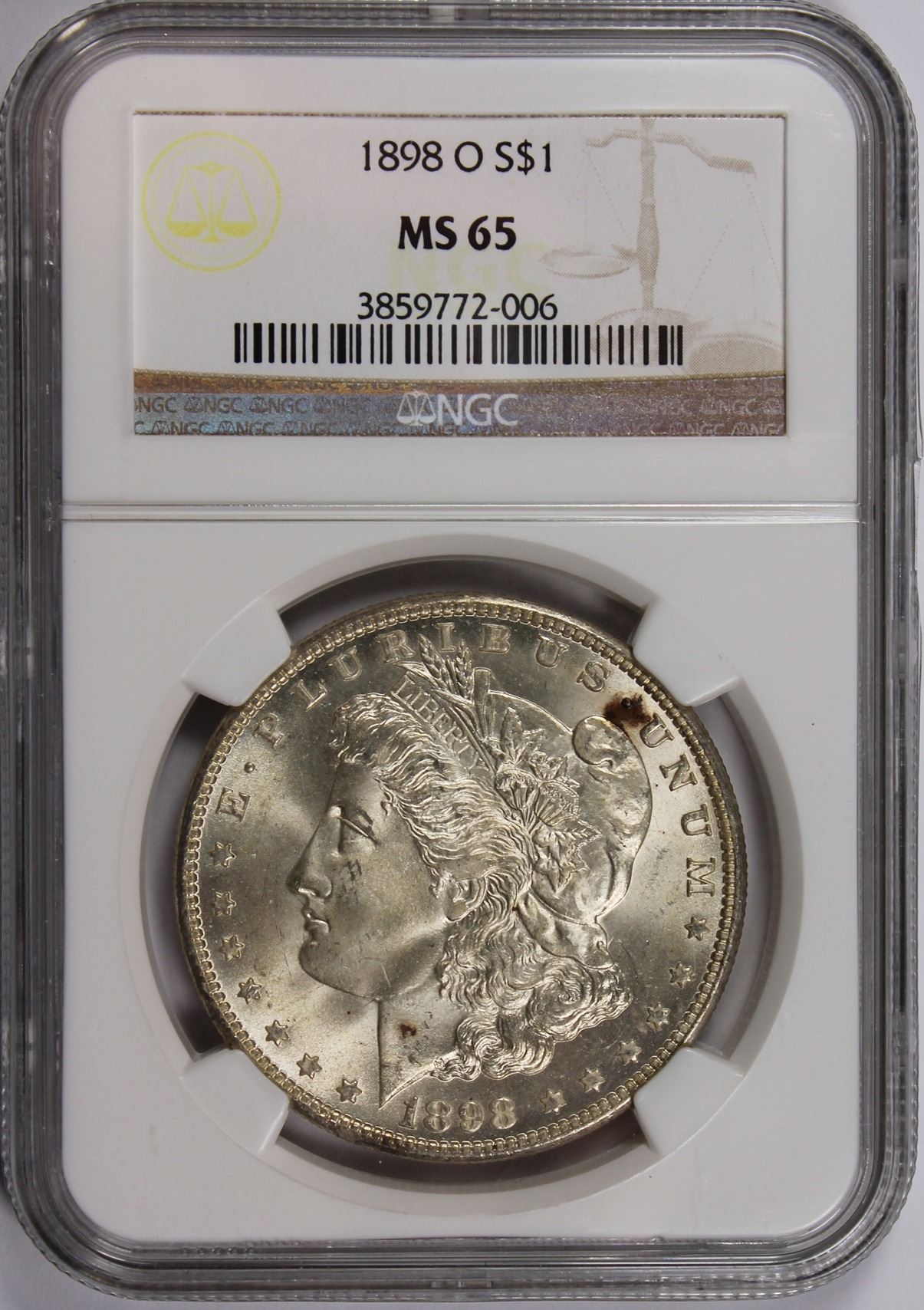1898-O MORGAN SILVER DOLLAR NGC MS 65 SNOW WHITE. ESTIMATE :$135-$175