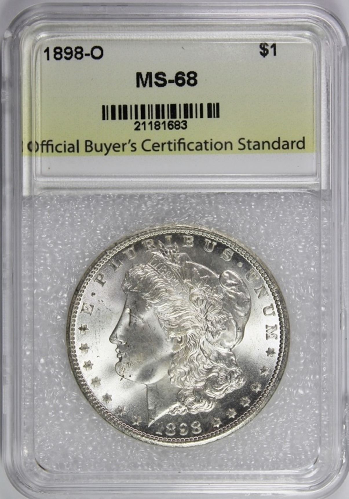 OBCS GRADED. SUPERB BU++ BLAST WHITE, AN INCREDIBLE NEW ORLEANS DOLLAR! MOUNDS OF LUSTRE! ESTIMATE: $3,750-$5,500