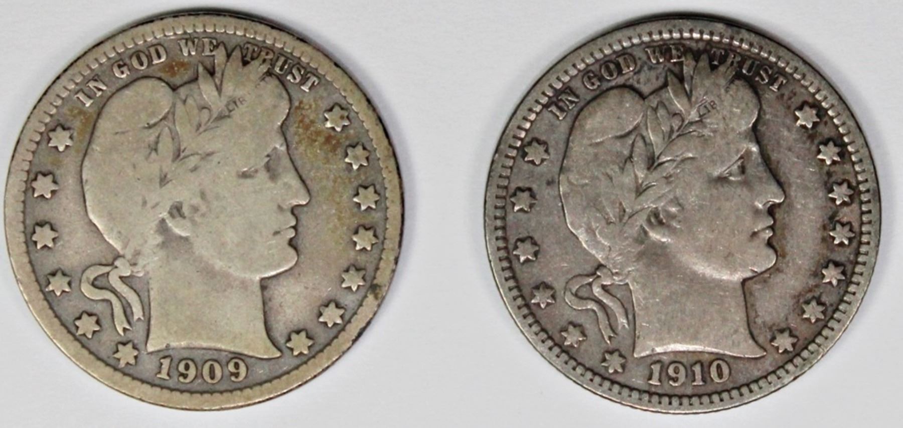 1909-S FINE AND 1910 VF+. ESTIMATE: $80-$100