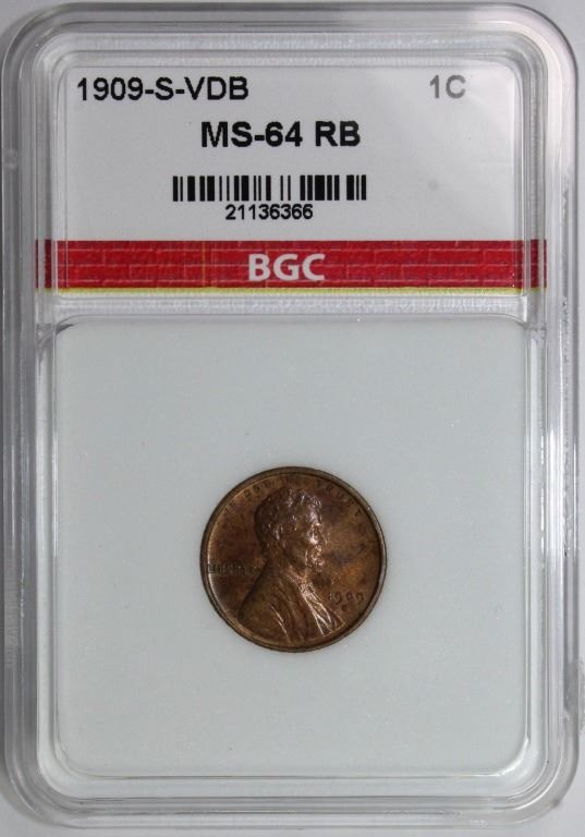 BGC GRADED. GEM BU R+B. THE KEY TO THE LINCOLN CENT SET! NICE COIN! ESTIMATE: $