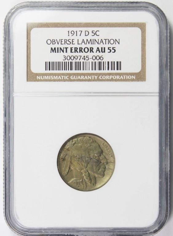 NGC AU 55. MINT ERROR. OBVERSE LAMINATION. ESTIMATE: $250-$300