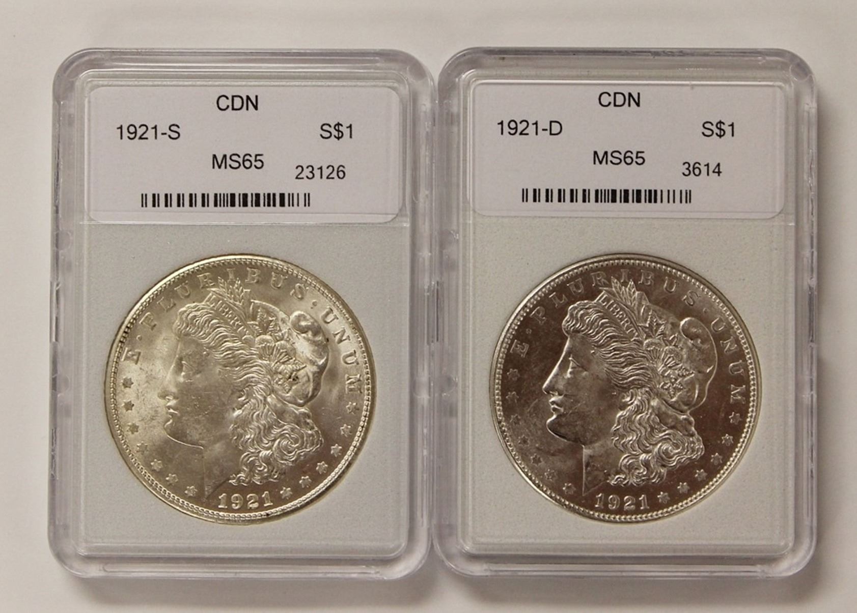 BOTH CDN GRADED. 1921-D IS GEM BU. ESTIMATE: $300-$350