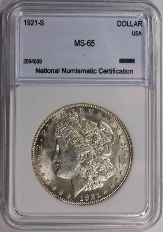 1921-S MORGAN SILVER DOLLAR NNC GRADED GEM BU. WHITE. ESTIMATE: $775-$900