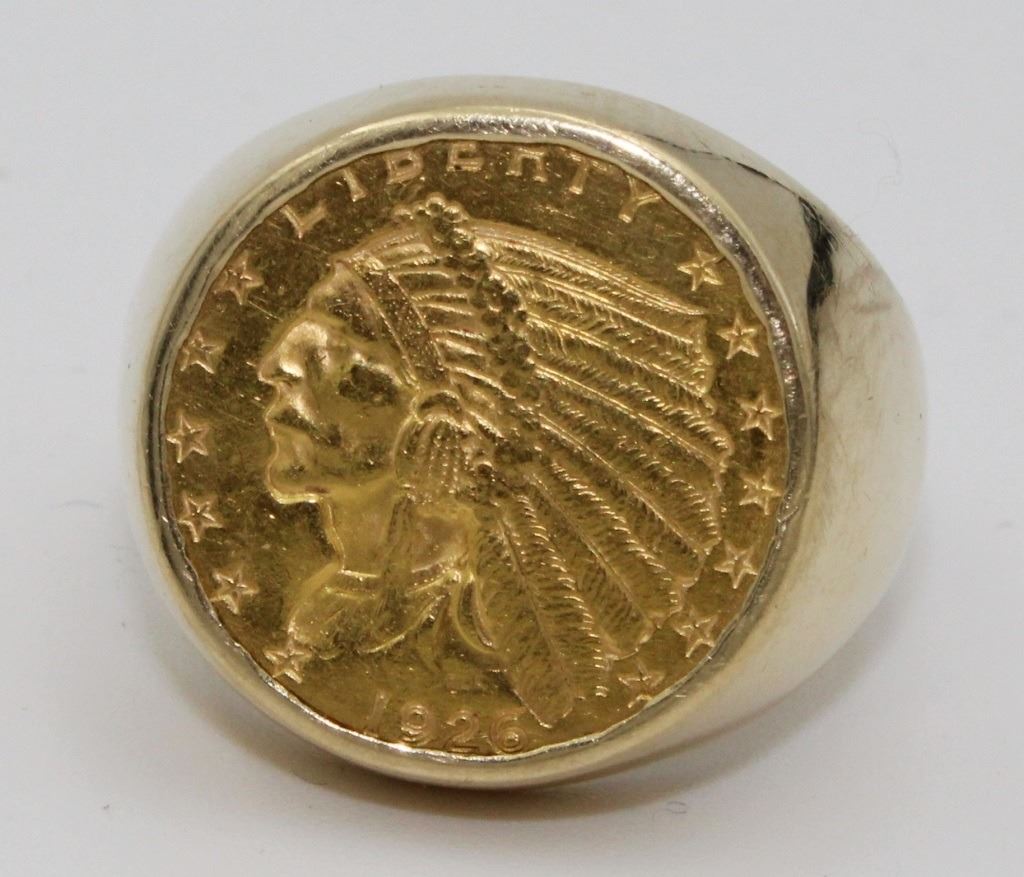 10.5 DWT TOTAL WEIGHT. ALMOST $475 IN GOLD VALUE ALONE! COIN WORTH $300, 14K RING. NICE CONDITION. ESTIMATE: $575-$650
