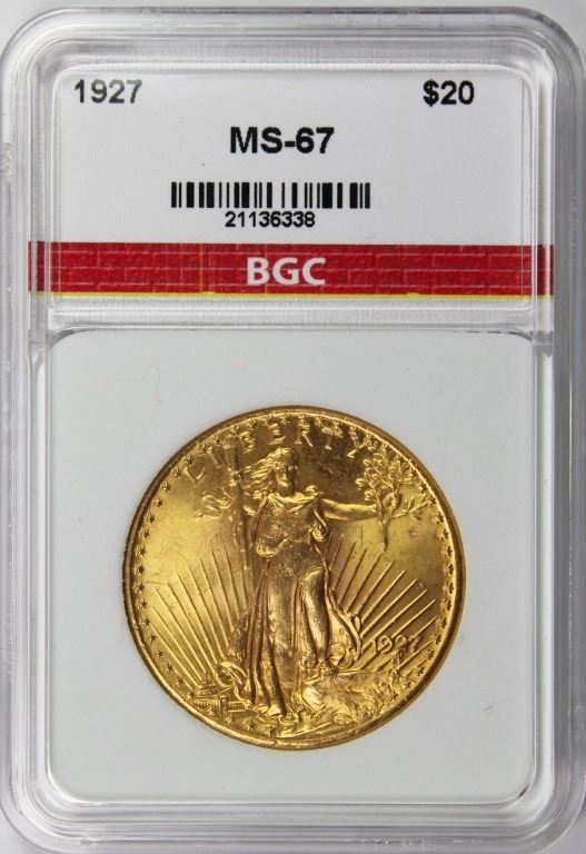 BGC GRADED. SUPERB GEM BU+ HAS INTERESTING MINT ERROR BOTTOM REVERS, SOMETHING FELL INTO DIE CREATING LITTLE CIRCLE SHAPES! ESTIMATE: $4500-$5000