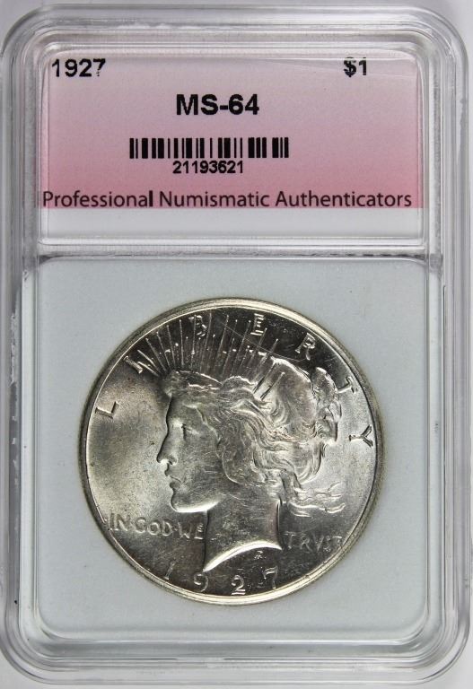 Personal Checks are welcome. Auctioneer reserve the right to hold won lots until the check clears. Bidder will pay for postage and insurance when coins are shipped.