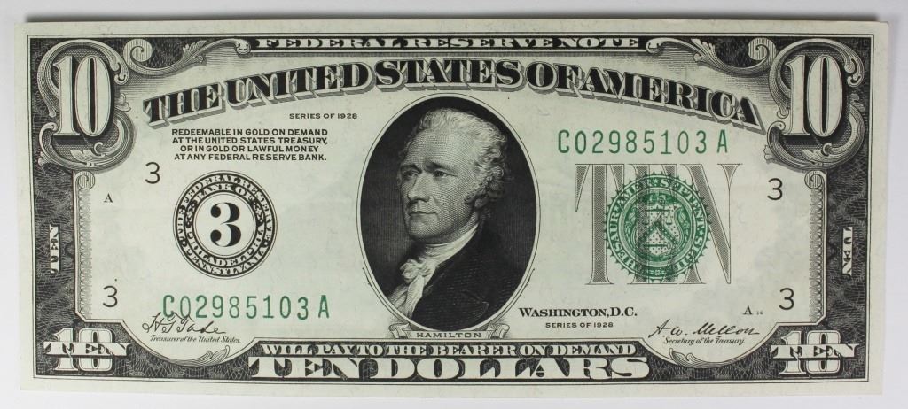 1928 $10 3- PHILADELPHIA FEDERAL RESERVE NOTES